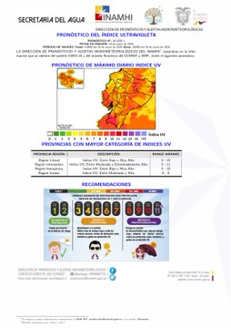 Boletín de pronóstico del índice máximo de radiación ultravioleta para el día Lunes, 20 de Enero de 2020.@Salud_Ec @Ambiente_Ec @AguaEc @cruzrojaecuador @ComunicacionEc