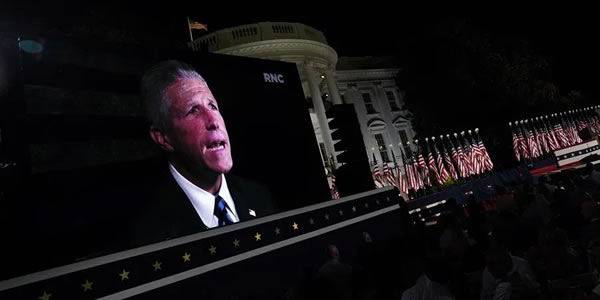Sus palabras siguieron a las de Pat Lynch, presidente de la Asociación Benevolente de la Policía de Nueva York (PBA), quien poco antes apareció en un monitor gigante dirigiéndose a la audiencia en el Jardín Sur de la Casa Blanca.