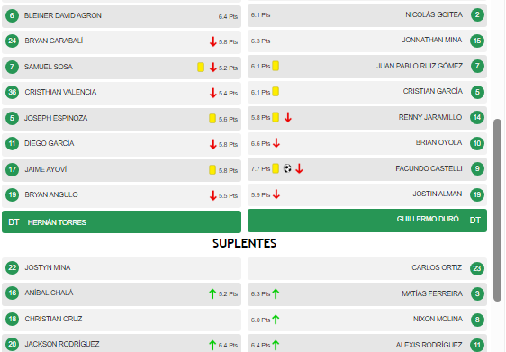 Por su parte, el conjunto de Guillermo Duró salió con una disposición táctica 4-4-2 con Brian Heras bajo los tres palos; Maikel Reyes, Luis Caicedo, Nicolás Goitea y Jonnathan Mina en defensa; Juan Pablo Ruiz Gómez, Cristian García, Renny Jaramillo y Brian Oyola en la mitad de cancha; y Facundo Castelli y Jostin Alman en la delantera.