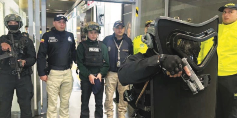 ‘Lobo Menor’, al centro con chaleco y casco de la policía, a su salida de Colombia rumbo a Guayaquil.