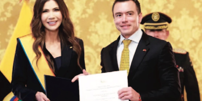 Ex secretaria de Seguridad Nacional de Trump condecorada por Noboa